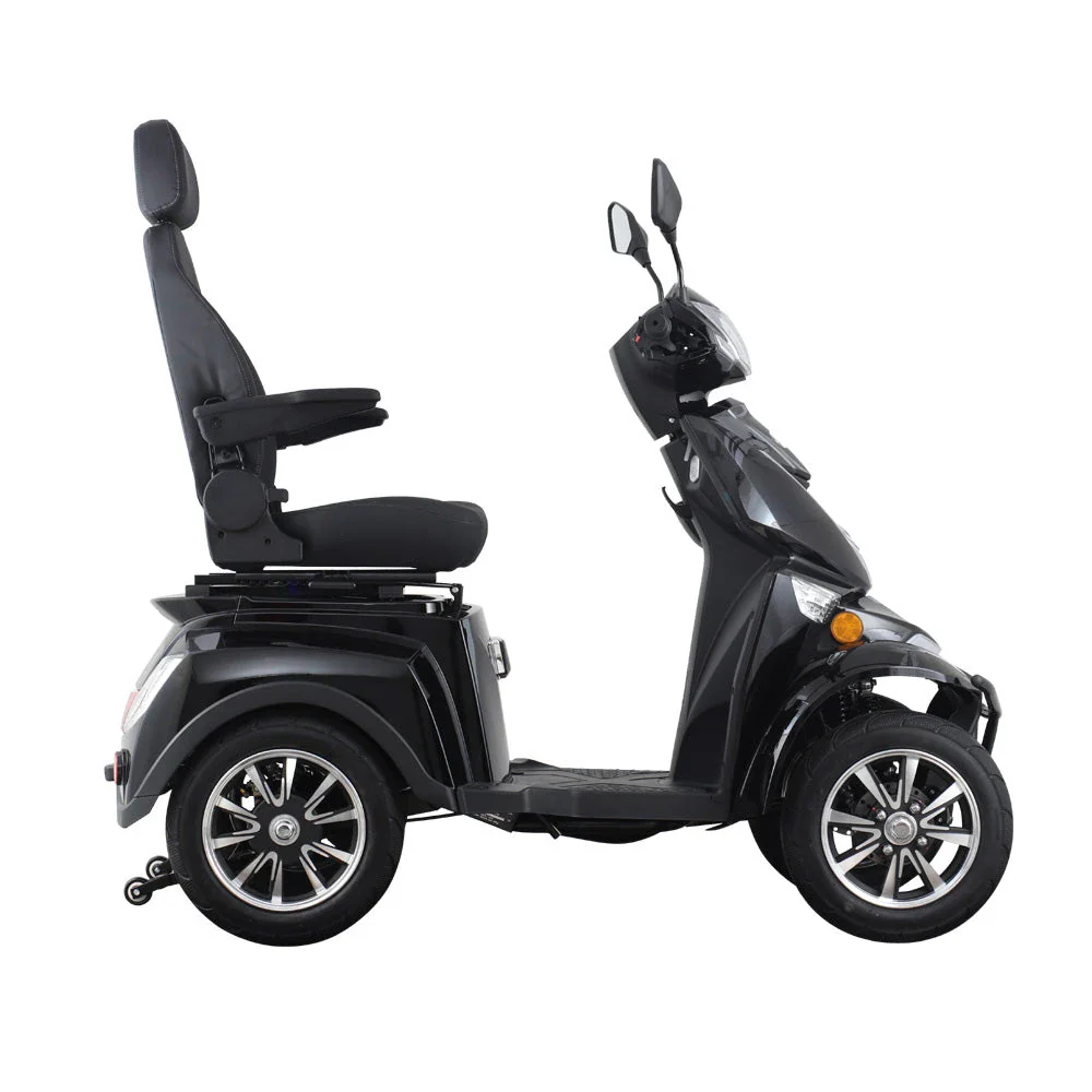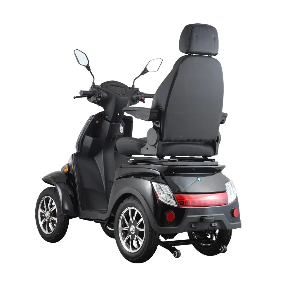 De moderne en stijlvolle scootmobiel heeft een leeggewicht van 74 kg, wat ervoor zorgt dat je in combinatie met de vier grote wielen te allen tijde stabiliteit ervaart. De krachtige motor brengt je in een razend tempo op plek van bestemming. De comfortabele captain seat zorgt ervoor dat je prettig kunt zitten tijdens jouw rit. Voor optimaal comfort kun je de armleuningen verstellen, zodat de stoel geheel aangepast kan worden naar jouw houding en wensen. Onder de stoel is opbergruimte beschikbaar om eenvoudig kleine spullen op te bergen. Daarnaast is het mogelijk om een koffer bij te bestellen, zodat je nog meer opbergruimte tot je beschikking hebt.